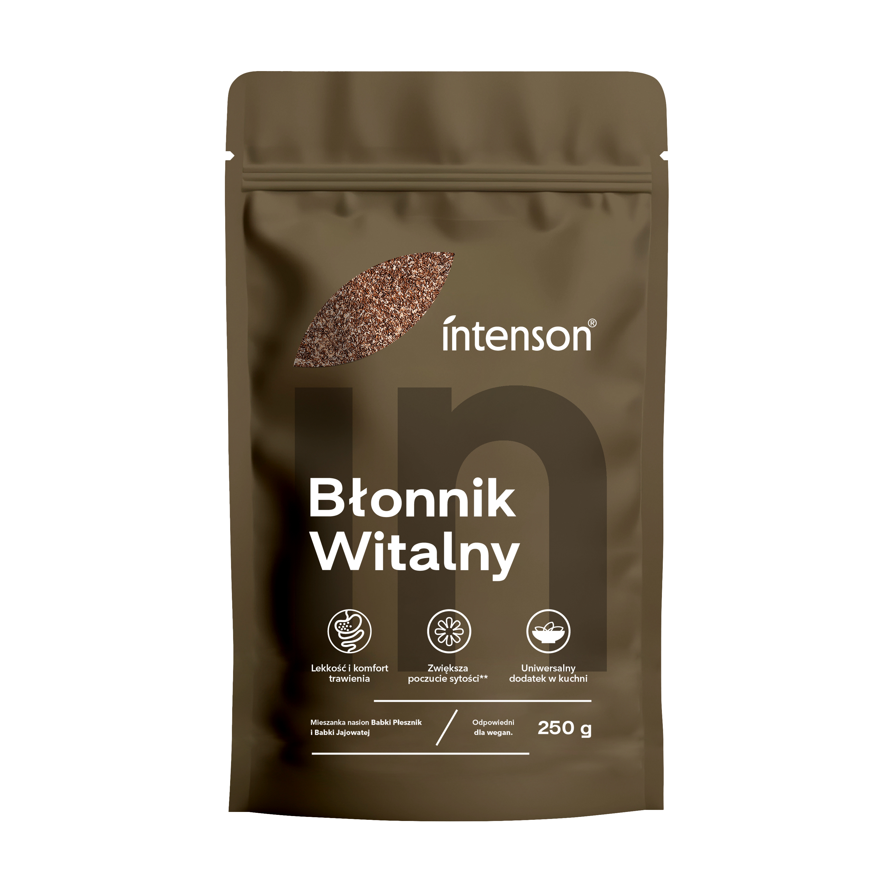 Intenson Błonnik Witalny to naturalny produkt roślinny stworzony z połączenia nasion babki płesznik i łupin babki jajowatej. Stanowi doskonałe źródło błonnika pokarmowego, który wspiera prawidłowe funkcjonowanie układu trawiennego i pomaga utrzymać lekkość oraz komfort każdego dnia. Regularne spożywanie błonnika witalnego to prosty sposób na włączenie do diety naturalnych składników wspierających równowagę organizmu.