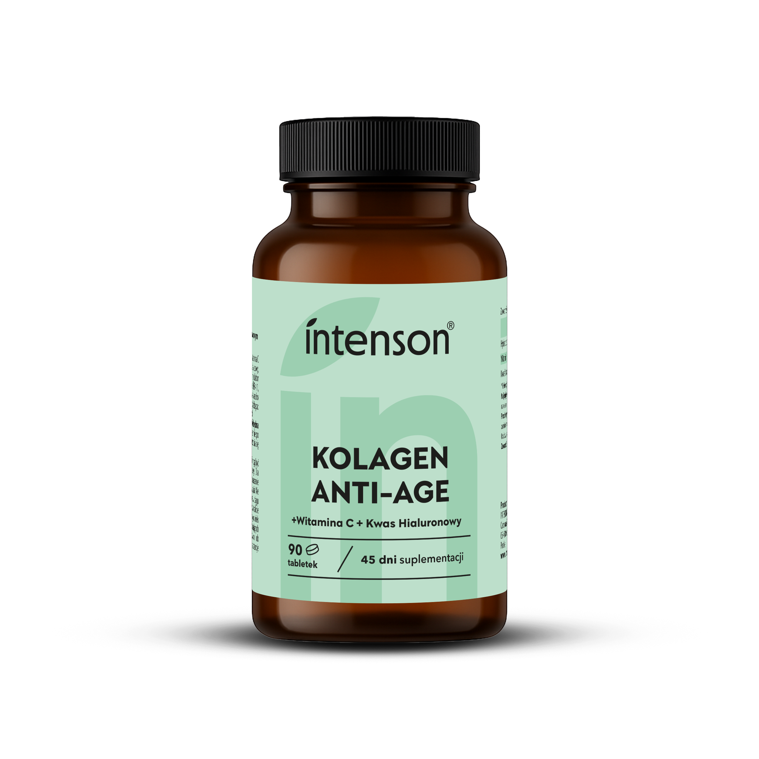 Intenson ANTI-AGE Kolagen + witamina C + kwas hialuronowy to kompleks stworzony z myślą o codziennej pielęgnacji od wewnątrz. Każda tabletka zawiera wysokiej jakości hydrolizowany kolagen, witaminę C i kwas hialuronowy – składniki, które wspierają naturalną kondycję skóry, włosów i paznokci oraz stanowią cenne uzupełnienie codziennej diety.