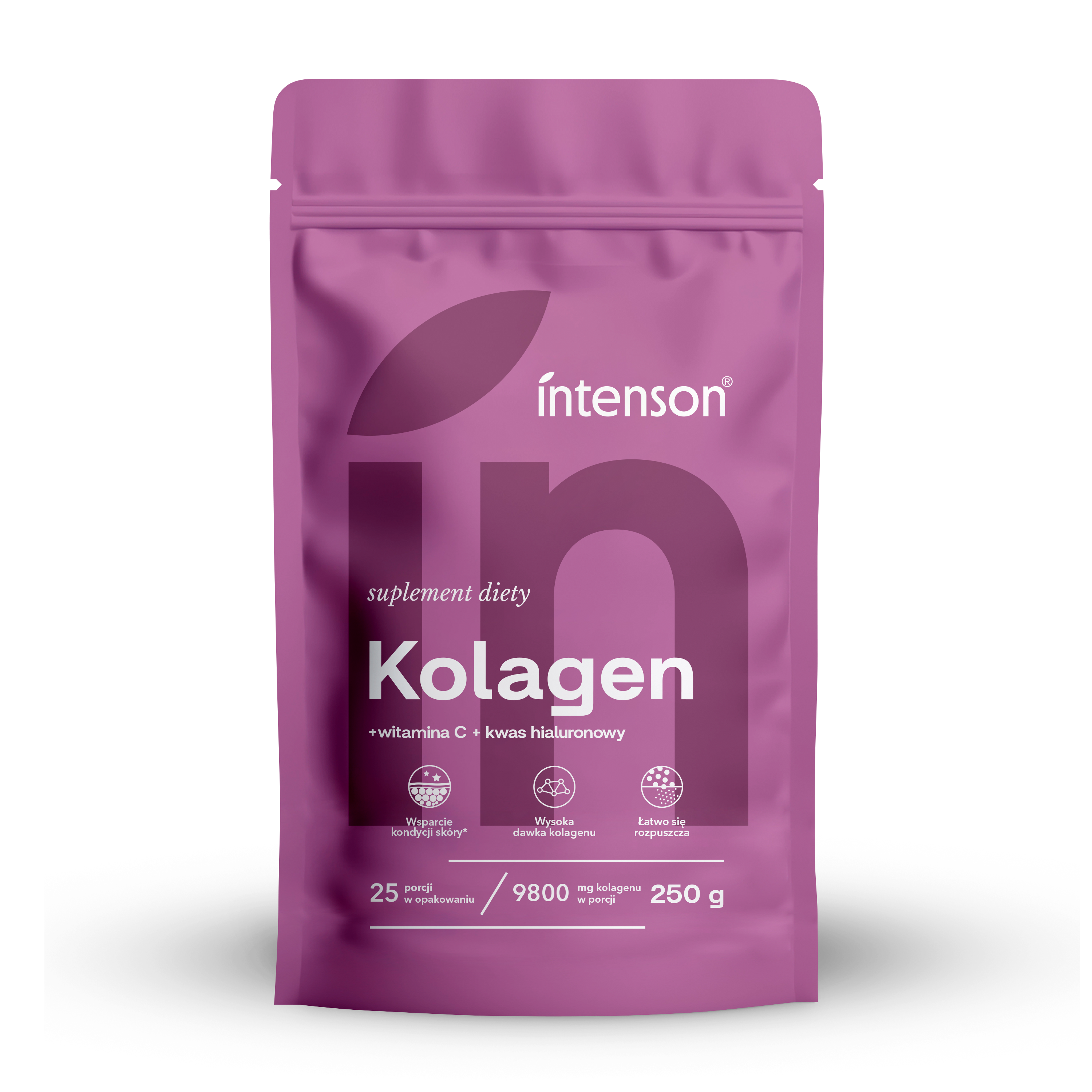 Dzięki łatwo rozpuszczalnej formie proszku, produkt jest prosty w użyciu i idealny do codziennego stosowania – można go dodać do wody, soku lub jogurtu. Intenson Kolagen to codzienny rytuał dla osób, które cenią jakość, skuteczność i eleganckie rozwiązania w trosce o zdrowy wygląd i dobre samopoczucie.